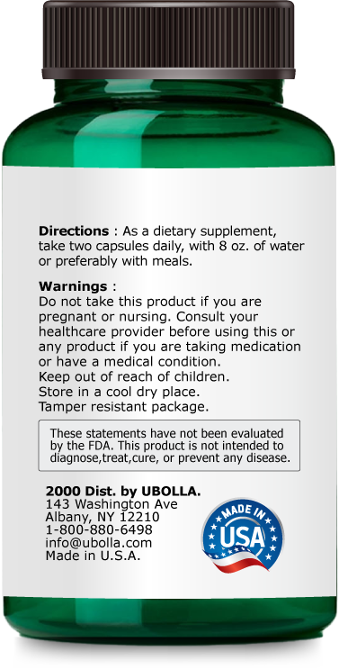 As a dietary supplement, take two capsules daily, with 8 oz. of water or preferably with meals.Warnings